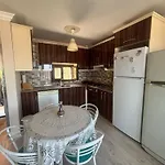 Une propriété en front de mer Villa YeniFoça dispose d'une cuisine équipée, ainsi que d'un coin repas pour cuisiner et dîner.